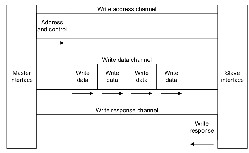 WRITE DATA CHANNEL (from Master to Slave) : data 전송 WRITE RESPONSE CHANNEL : Slave는 Master에게 전송완료의 signal으로 을 사용